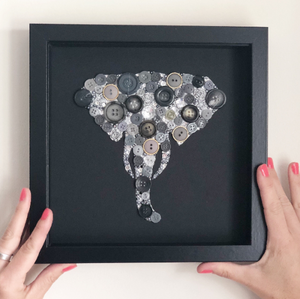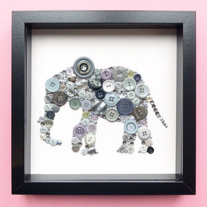 14th Wedding Anniversary Gift - Framed Elephant Head Button Art - Ivory Anniversary